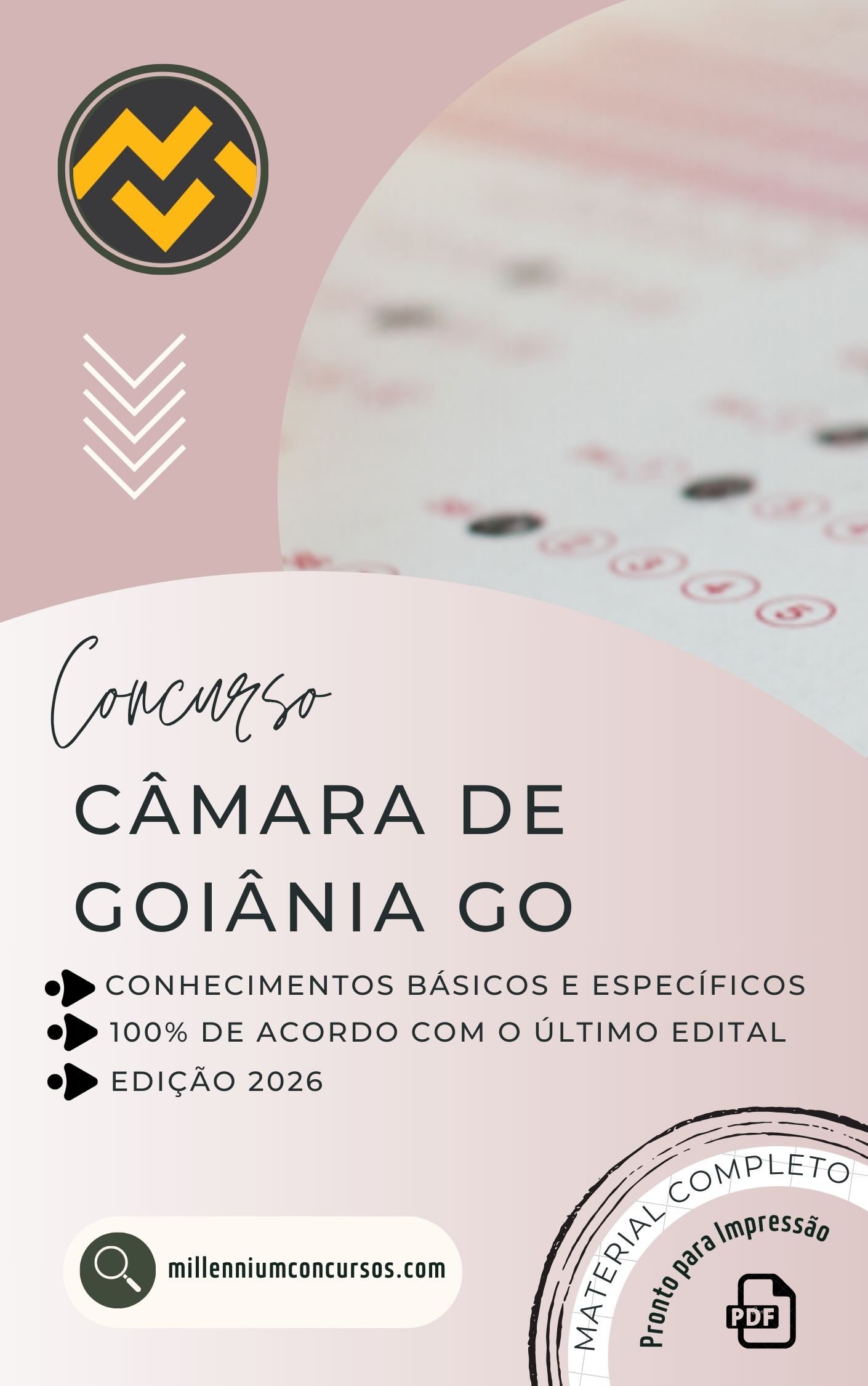 APOSTILA CÂMARA MUNICIPAL DE GOIÂNIA GO 2026 CINEGRAFISTA. Material completo que abrange tanto os conteúdos de conhecimentos básicos quanto os específicos exigidos no edital para esse cargo.
