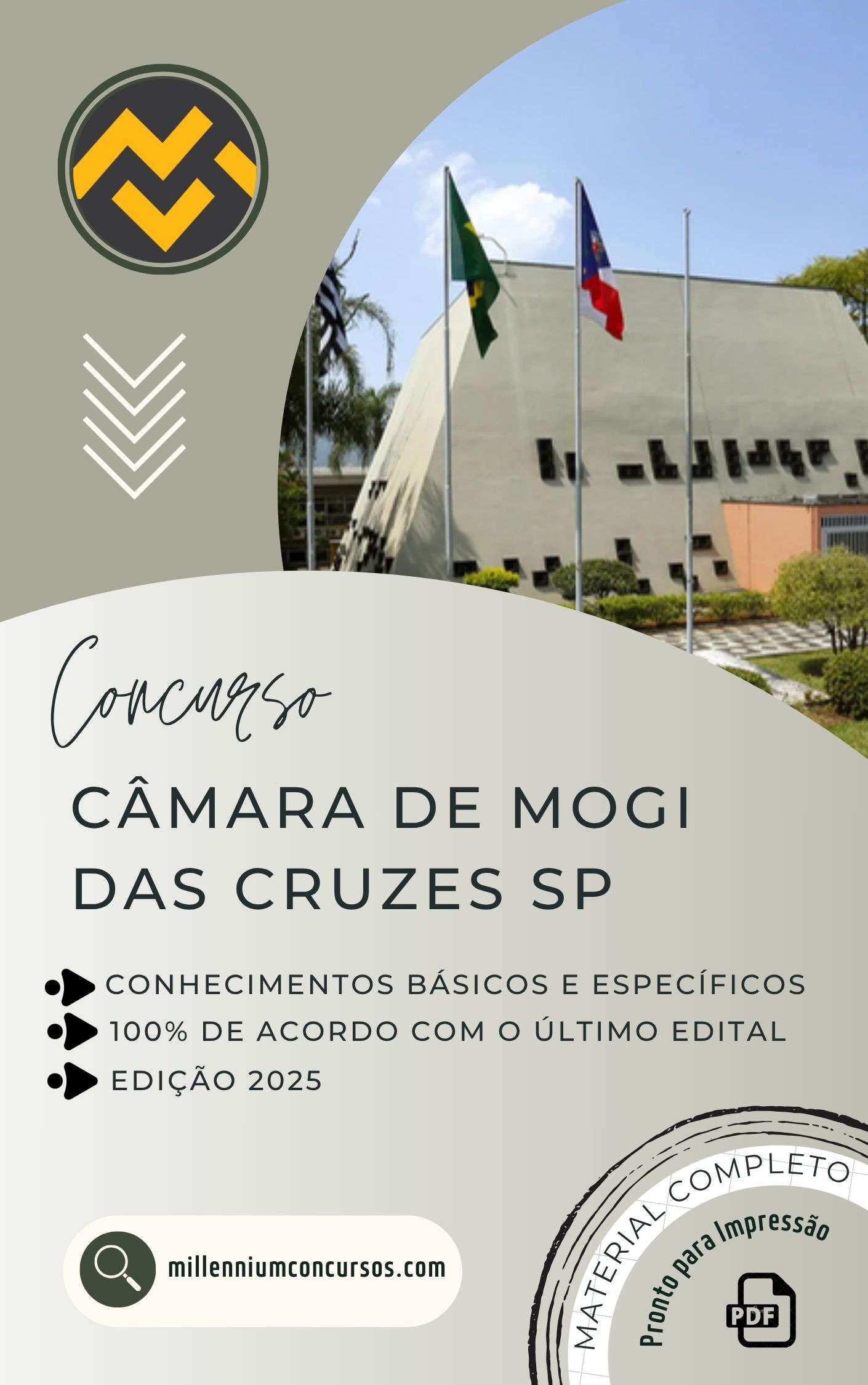 APOSTILA CÂMARA DE MOGI DAS CRUZES SP 2025 CONTADOR. Material completo que abrange tanto os conteúdos de conhecimentos básicos quanto os específicos exigidos no edital para esse cargo.