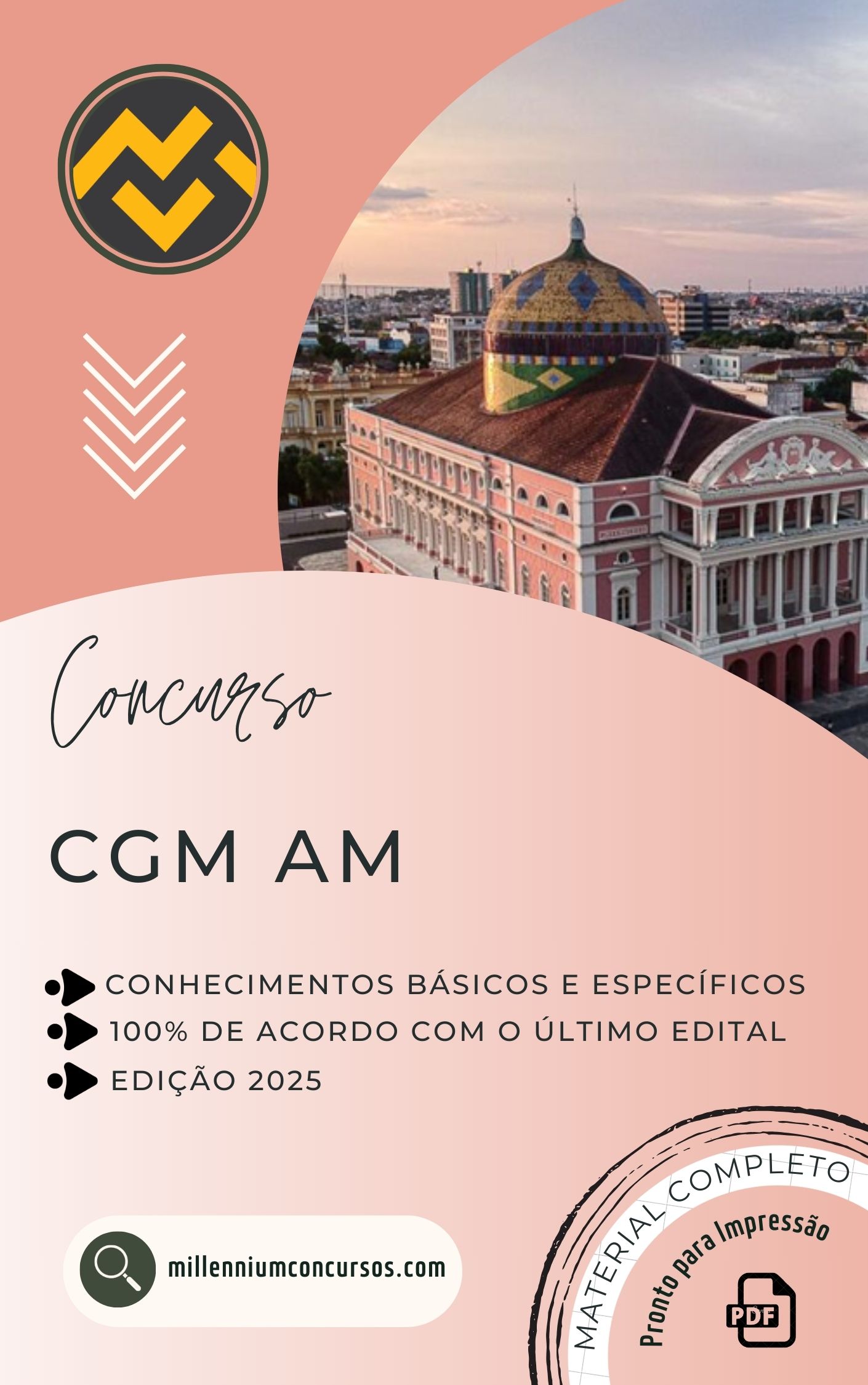 APOSTILA CGM AM 2025 AUDITOR MUNICIPAL DE CONTROLE INTERNO – DIREITO. Material completo que abrange tanto os conteúdos de conhecimentos básicos quanto os específicos exigidos no edital para esse cargo.