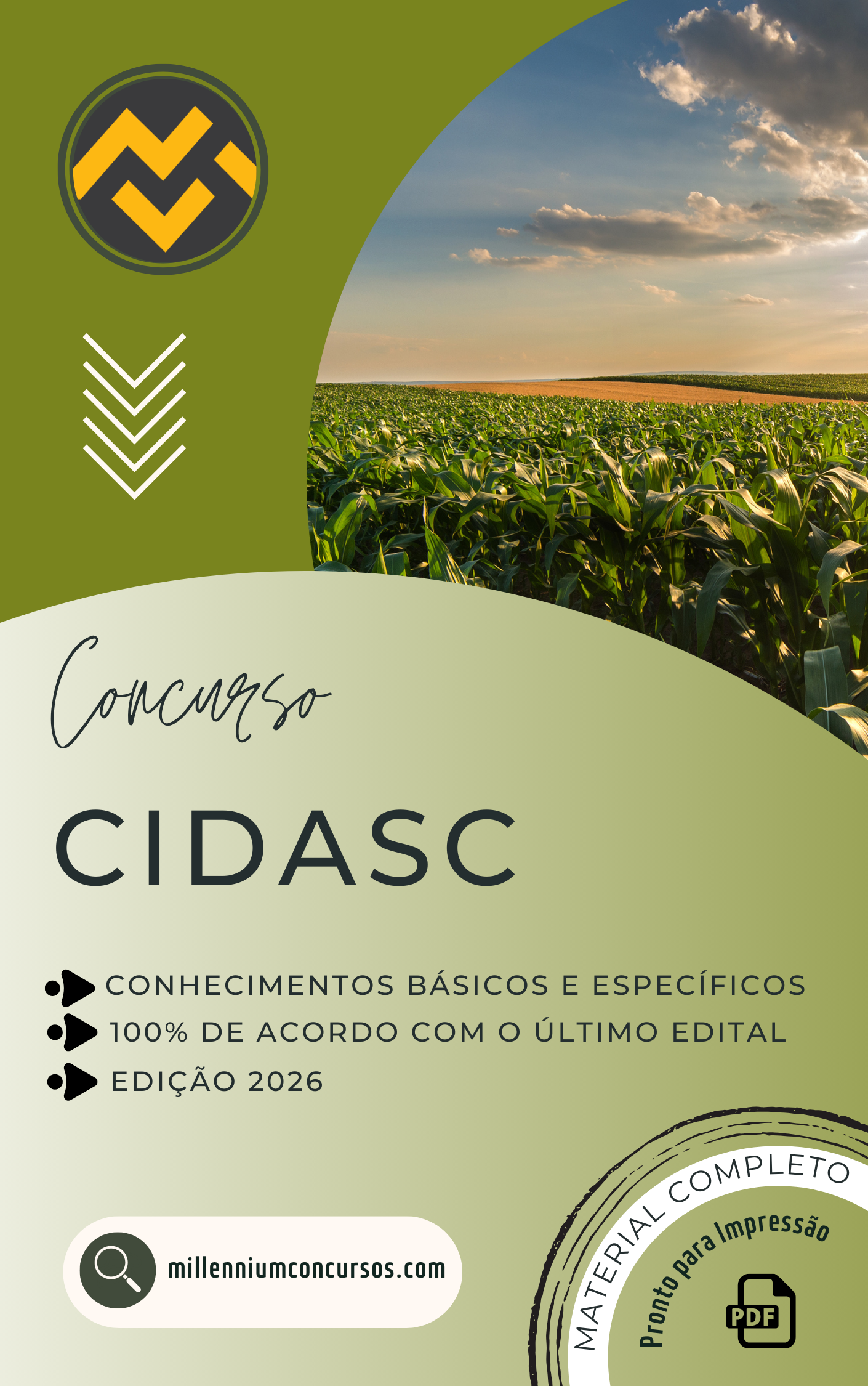 As apostilas do Concurso CIDASC 2026 foram desenvolvidas pela Editora Millennium com foco no perfil da banca FEPESE, priorizando organização didática, linguagem clara e abordagem objetiva dos conteúdos cobrados em prova.