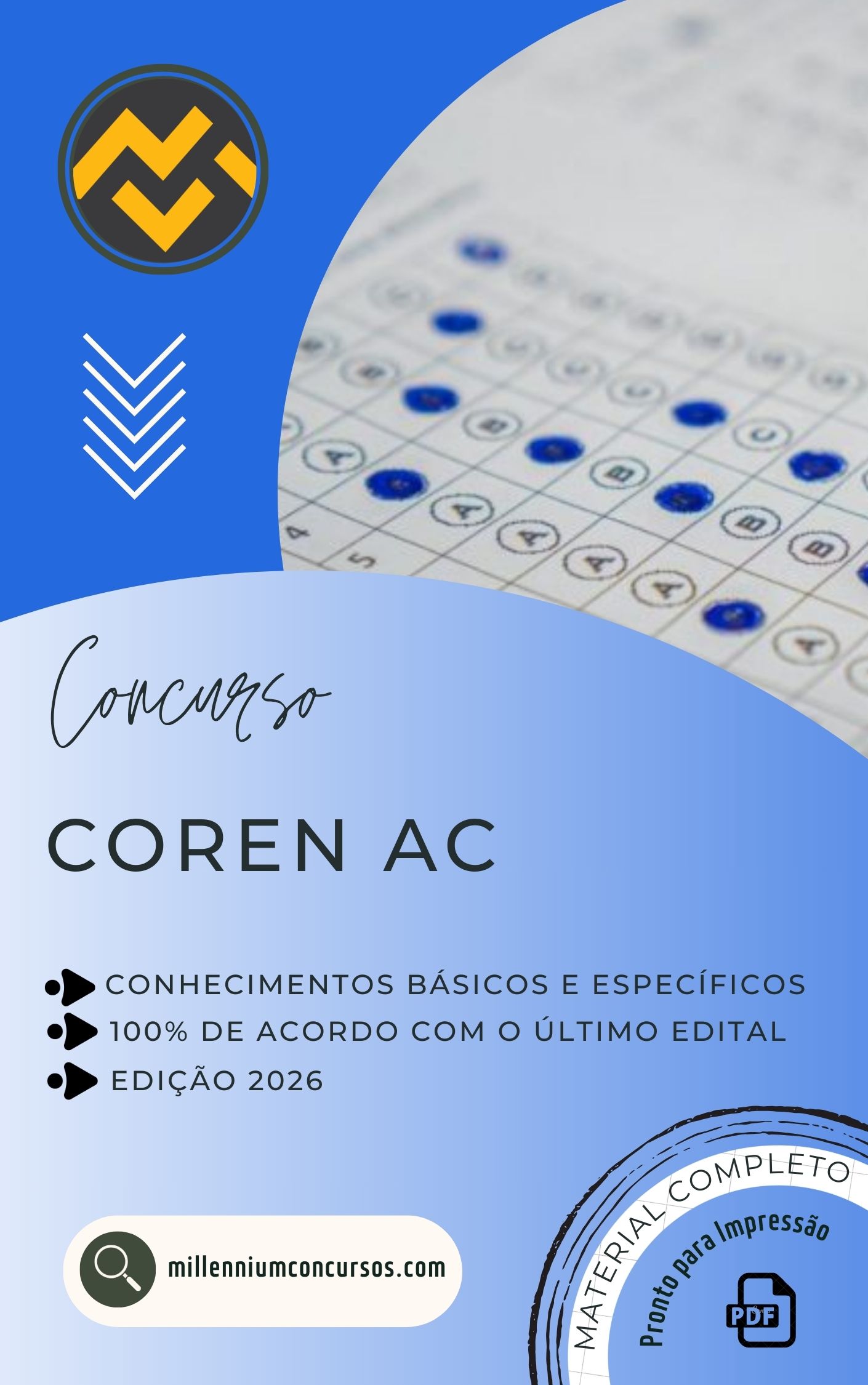 APOSTILA COREN AC 2026 ASSESSOR DE COMUNICAÇÃO. Material completo que abrange tanto os conteúdos de conhecimentos básicos quanto os específicos exigidos no edital para esse cargo.