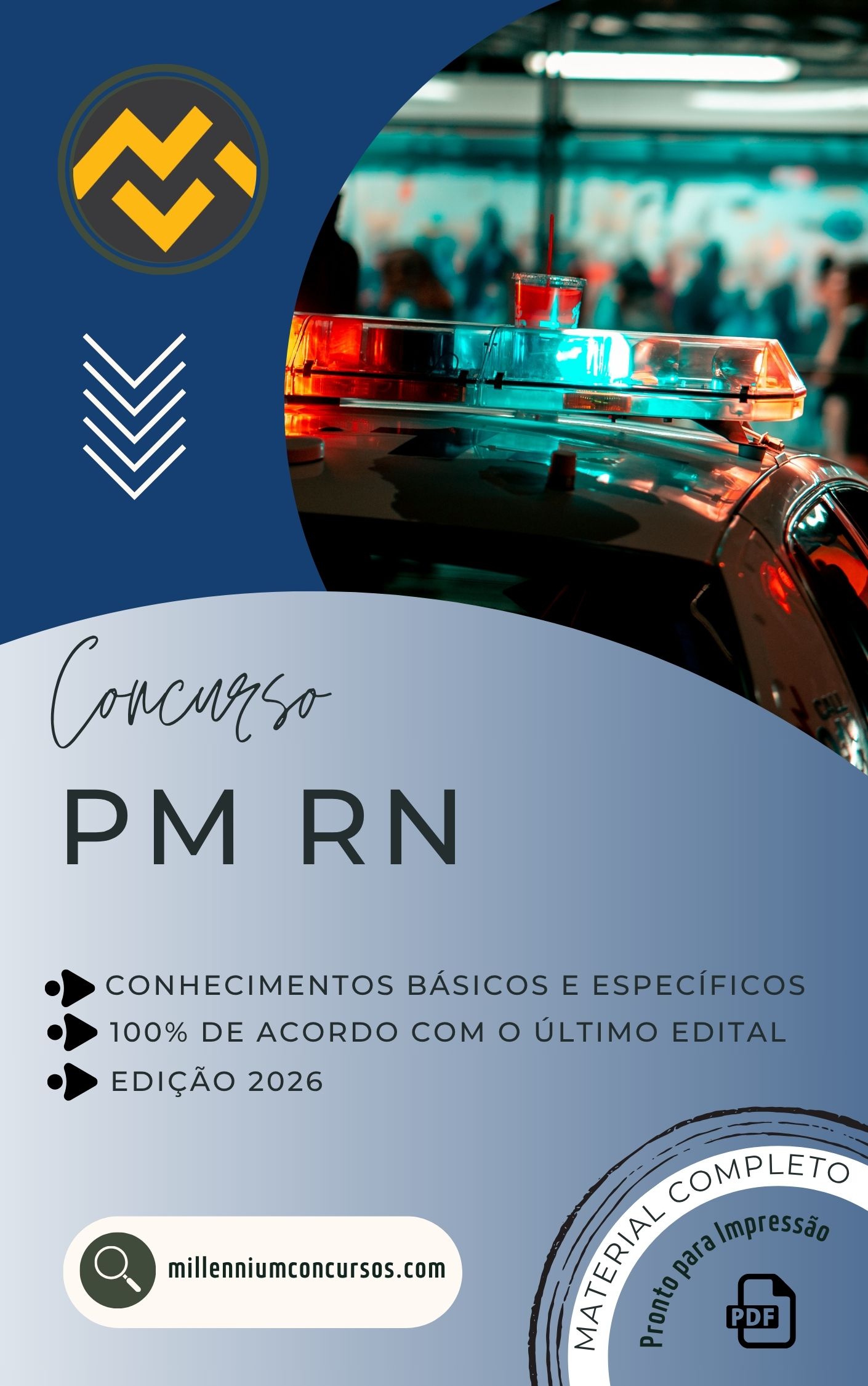 Informativo Millennium: Edital PM RN 2026 Publicado. Vagas para o Quadro de Praças de Saúde (QPS). Conteúdo focado na banca IDECAN.