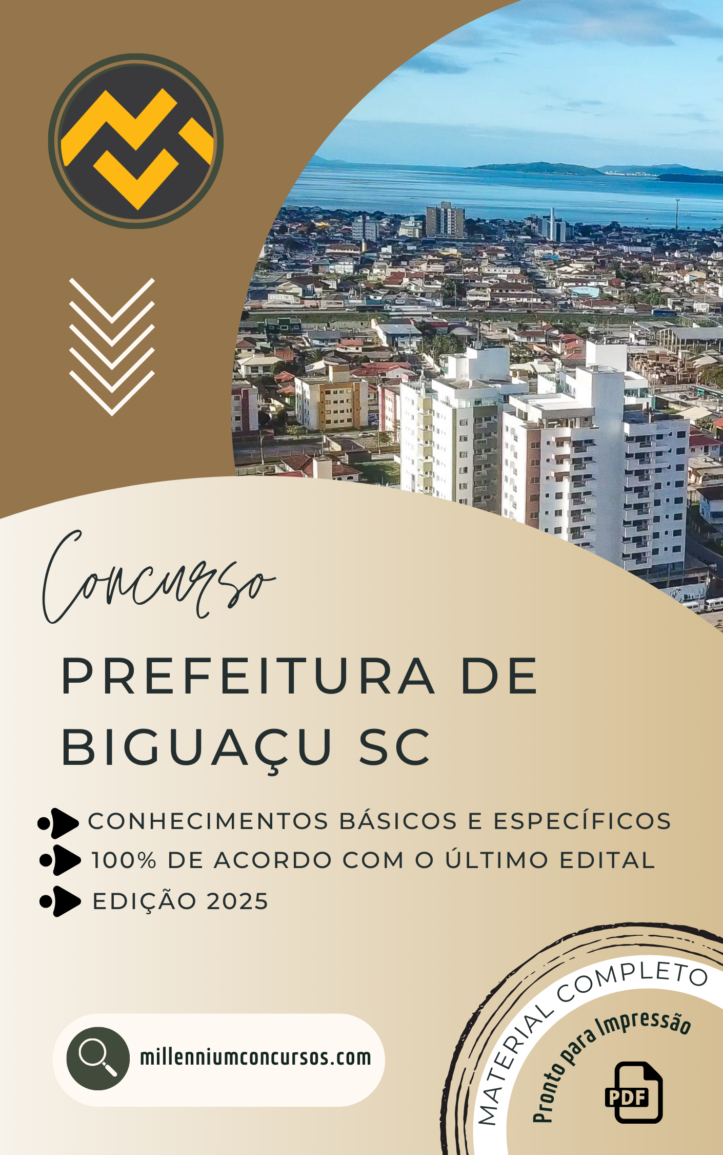 APOSTILA PREFEITURA DE BIGUAÇU SC 2025 FARMACÊUTICO. Material completo que abrange tanto os conteúdos de conhecimentos básicos quanto os específicos exigidos no edital para esse cargo.