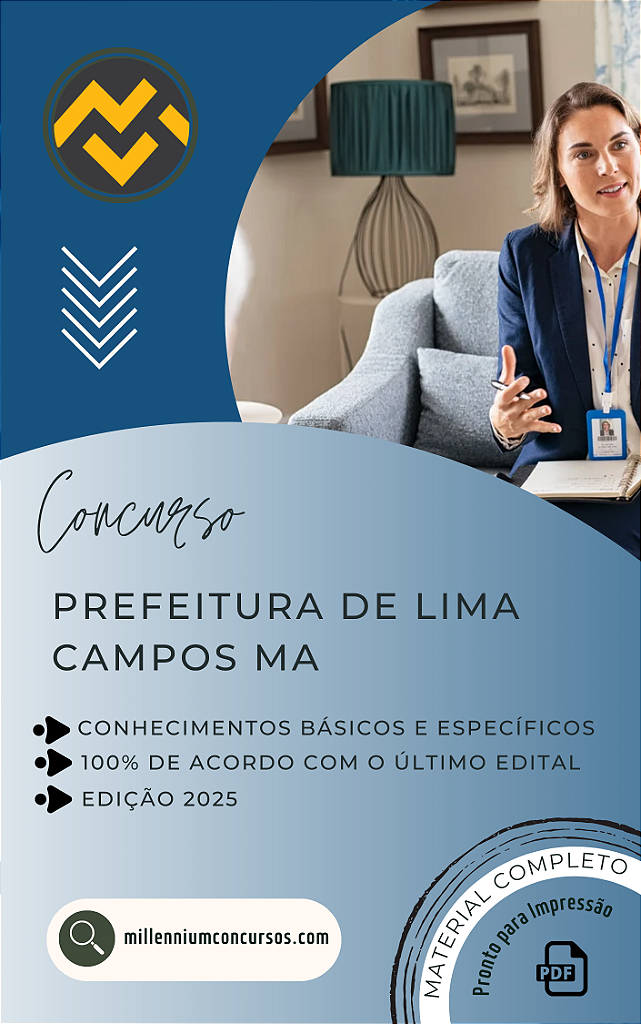 APOSTILA PREFEITURA DE LIMA CAMPOS MA 2025 PROFESSOR DE EDUCAÇÃO INFANTIL E DAS SÉRIES INICIAIS DO ENSINO FUNDAMENTAL (1° AO 5° ANO). Material completo que abrange tanto os conteúdos de conhecimentos básicos quanto os específicos exigidos no edital para esse cargo.