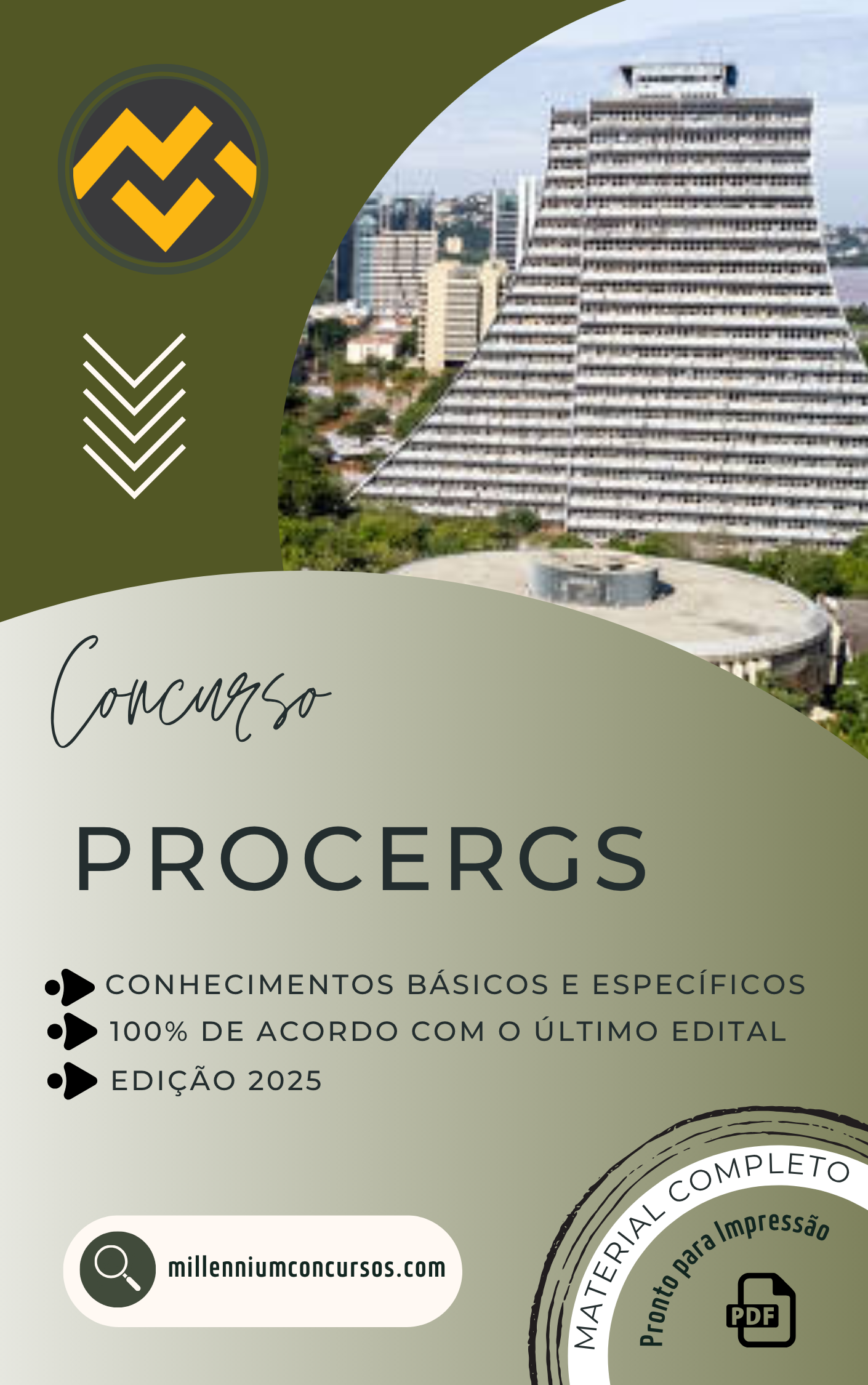 APOSTILA PROCERGS 2025 ANC – ANALISTA EM COMPUTAÇÃO - ÊNFASE EM PROGRAMAÇÃO DE SISTEMAS NA TECNOLOGIA MICROSOFT. Material completo que abrange tanto os conteúdos de conhecimentos básicos quanto os específicos exigidos no edital para esse cargo.