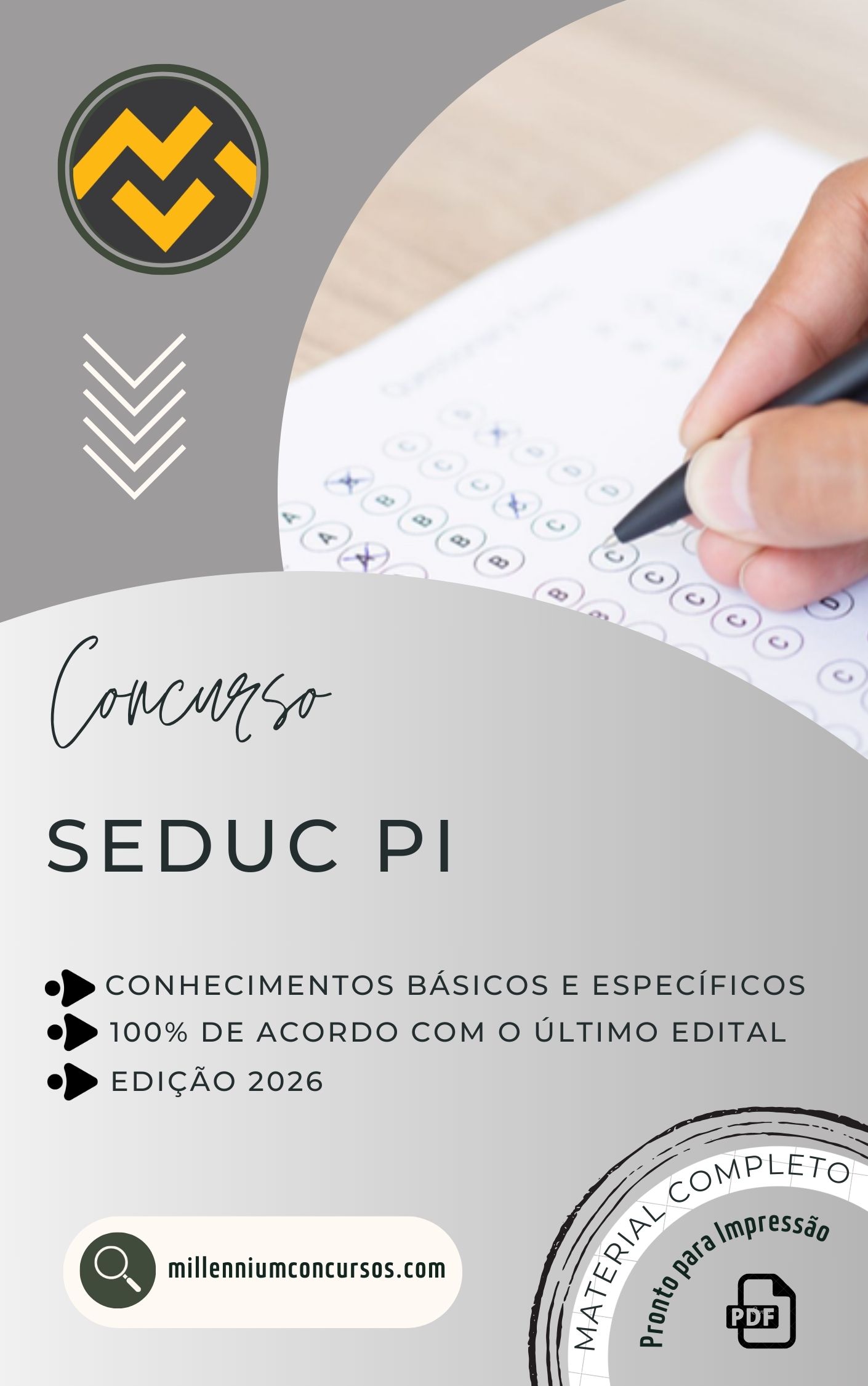 APOSTILA SEDUC PI 2026 PROFESSOR DA EDUCAÇÃO BÁSICA – HISTÓRIA. Material completo que abrange tanto os conteúdos de conhecimentos básicos quanto os específicos exigidos no edital para esse cargo.