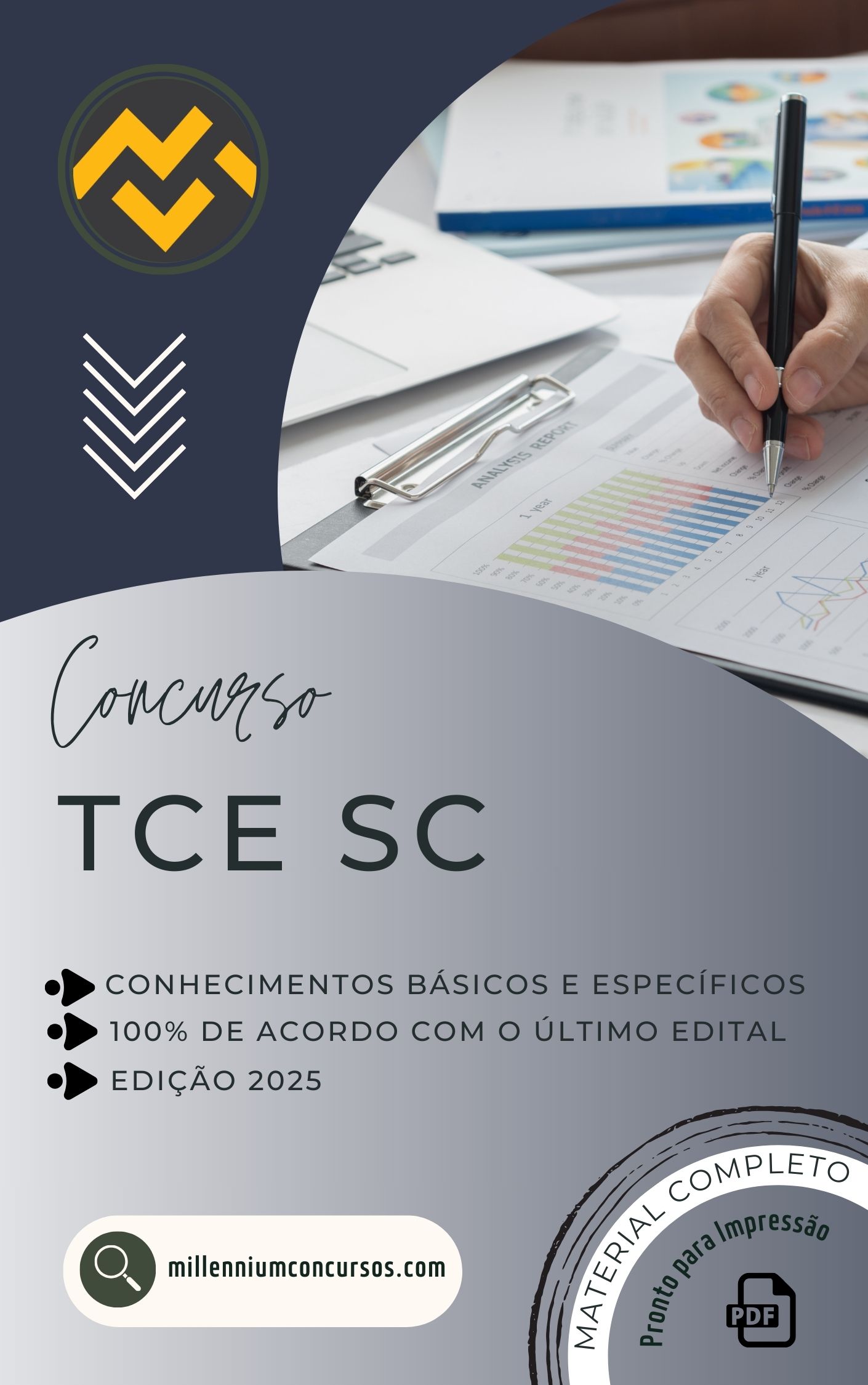 Esta apostila foi desenvolvida para candidatos que buscam alto desempenho no concurso do Tribunal de Contas do Estado de Santa Catarina (TCE/SC). O material é organizado por disciplinas e tópicos, com linguagem objetiva e foco em prova, respeitando o perfil da banca FGV.